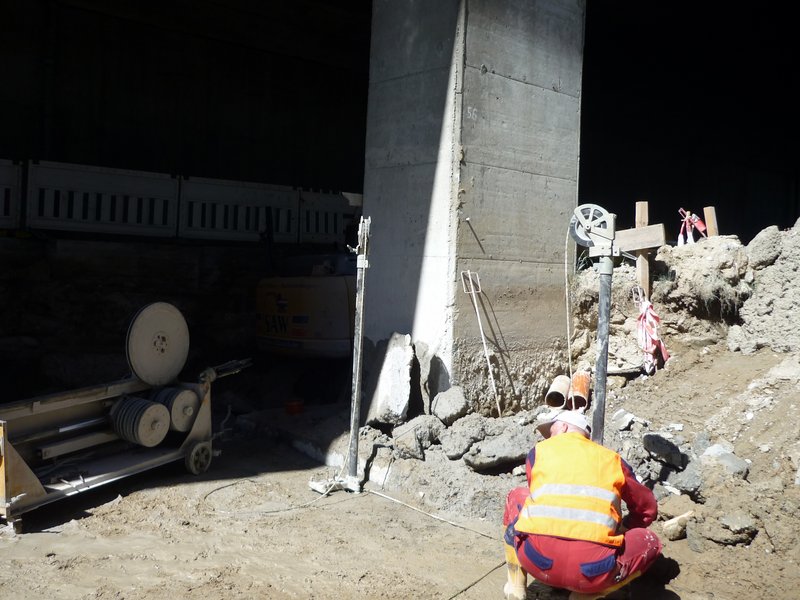 wird heute im Abbruch,Hochbau und Tiefbau zum Trennen sehr starker Wände angewandt z.B. für nachträgliche Öffnungen in Bunkerwände und Decken oder beim Brückenabbruch.